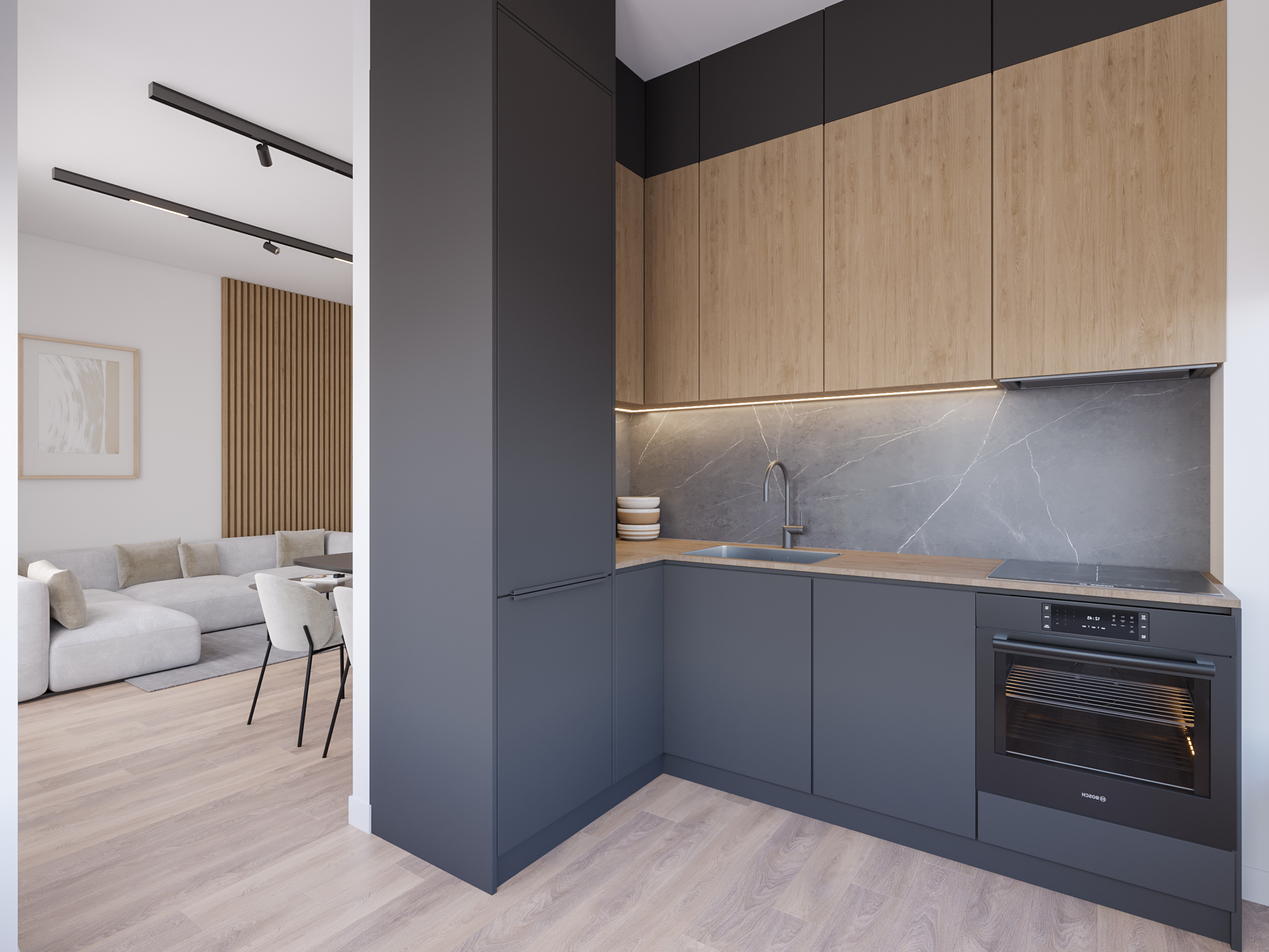 – Moderne open keuken: Compleet met inductiekookplaat, afzuigsysteem, combi-oven, vaatwasser en koelkast met vriesvak.