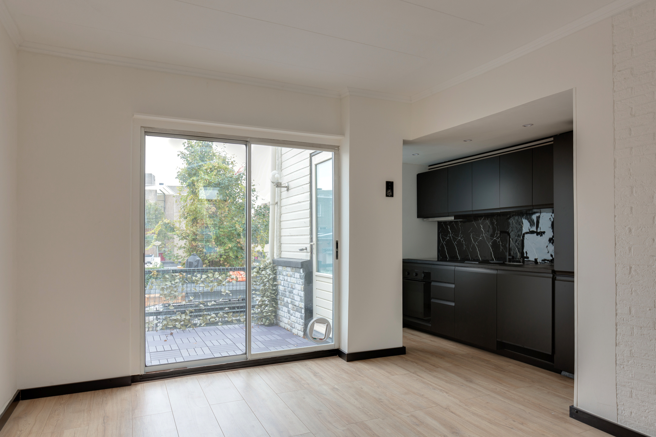 -Lichte woonkamer met open keuken en toegang tot ruim balkon